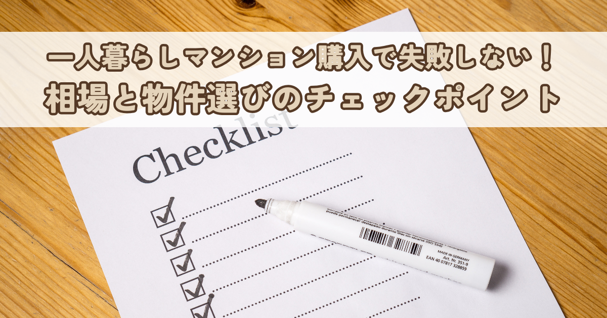 一人暮らしマンション購入で失敗しない!相場と物件選びのチェックポイント